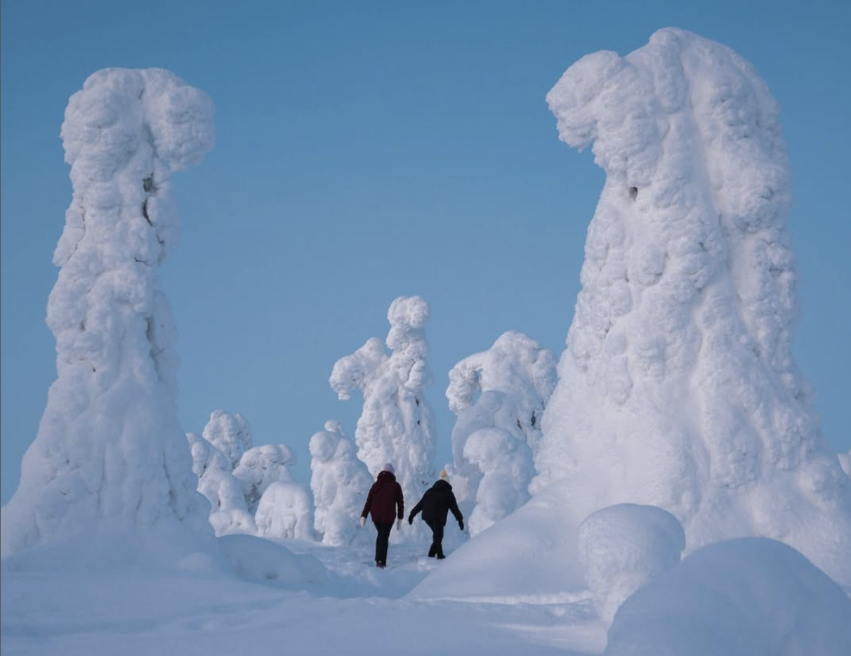 Cette liberté nous permettra d’optimiser chaque journée, et de vous proposer le meilleur timing pour vos activités : que ce soit pour les randonnées bungypump, les sorties en raquettes à neige, la balade en ski de fond.Nous nous baladerons dans des paysages variés uniques de cette région de Laponie : des forêts boréales aux plateaux du parc national de Pallas- Yllästunturi, entre rivières gelées, lacs gelés et silhouettes des candélabres chargés de neige.
